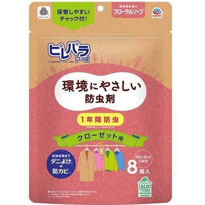 Earth Pilepara Mothballs Hanging Fore Closets 8pcs Floral Scent(大地製藥玫瑰花香衣物防蟲掛包)