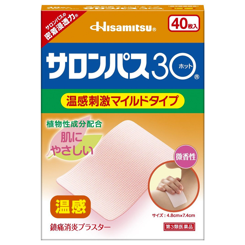SALONPAS 30 HOT Pain Relieving Patch 40 patches Low Irritation Hisamitsu Japan
