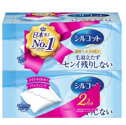 Unicharm Silcot Velvet Touch Smooth Cotton 82 Puffs X 2 ( 尤妮佳 壓邊化妝棉薄款 82枚入*2盒)